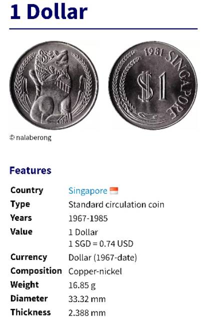 Seperti Dilambangkan Oleh Dolar Singapura Uang Dan Harga Di Singapura Tukar Kantor Dolar Singapura Di Pusat : Old Coin Singapur 1 Dollar Singapur Keterangan Koin Negara:
