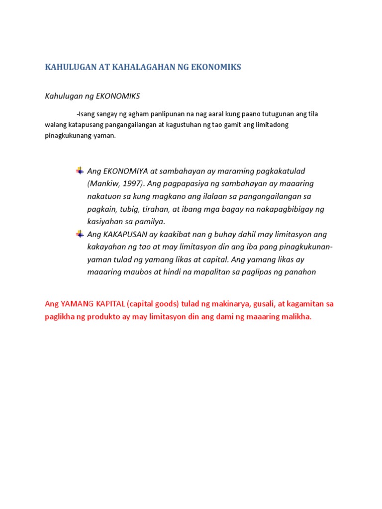 Ekonomiks Kahulugan At Kahalagahan - 01 Nabibigyang Kahulugan Ang Ekonomiks.