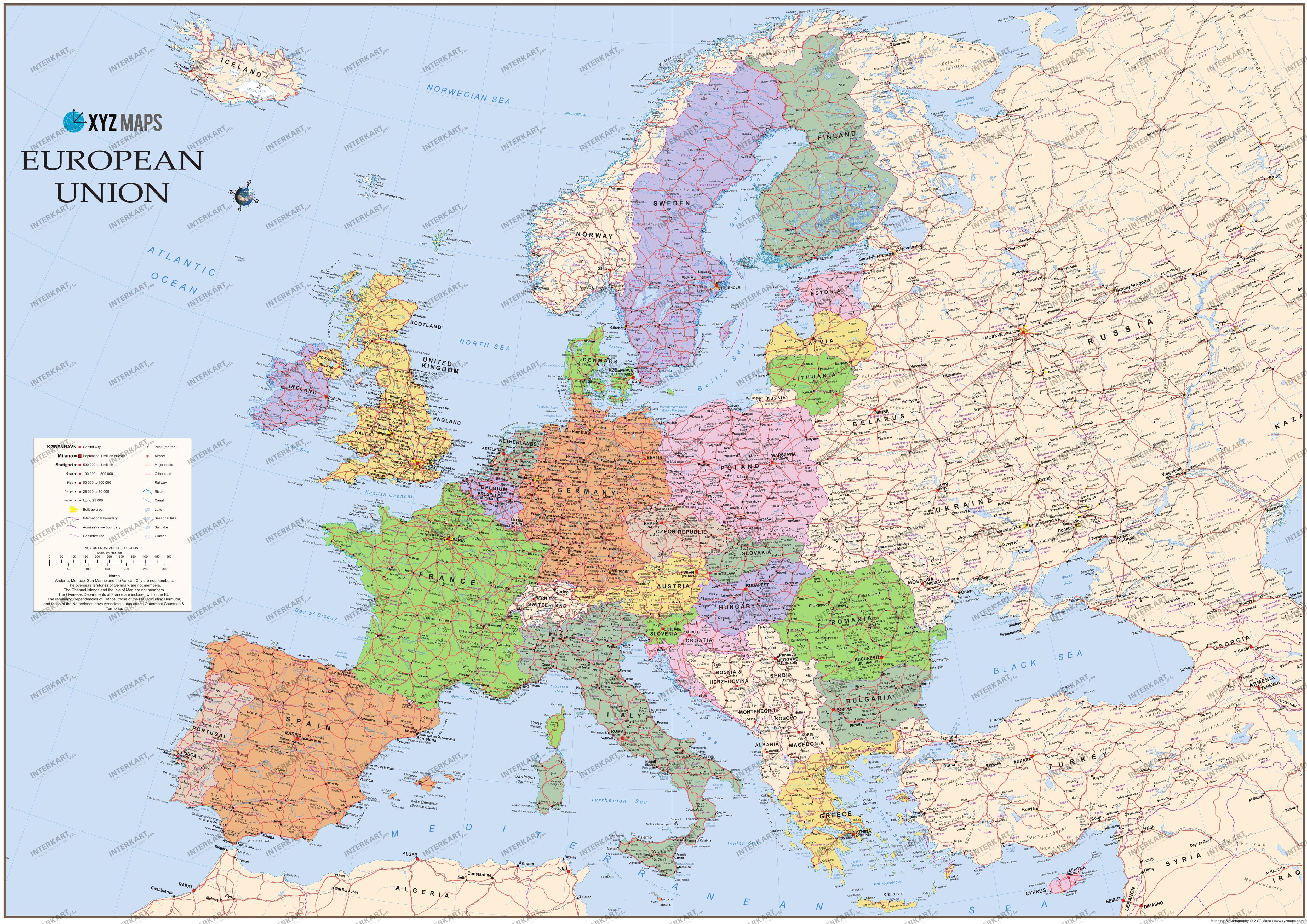 European Union Eu Map 2017 135 X 100cm. This map shows countries in european union. The european union (eu) is a political and economic union of 27 member states that are located primarily in europe. The european union is currently a conglomeration of 28 european countries, which we will list below. European union map showing the member countries of european union (eu) and their political boundaries. One union, 28 countries, 500 million inhabitants: How well do you know your eu? The map has included the united kingdom. From the emerald isle to the black sea, from the land of a thousand lakes to the jewel of the mediterranean. All official european union website addresses are in the europa.eu domain. Its members have a combined area of 4,233,255.3 km2 (1,634,469.0 sq mi). Go back to see more maps of europe. The european union is an economic and political alliance of 28 european countries. The map shows european union member states and new member states of the european union since 2004, 2007, and 2013 (in yellow/orange), and member states of european free trade. The designations employed and the presentation of material on this map do not imply the expression of any opinion. Map by evan centanni, from blank map by ssolbergj.