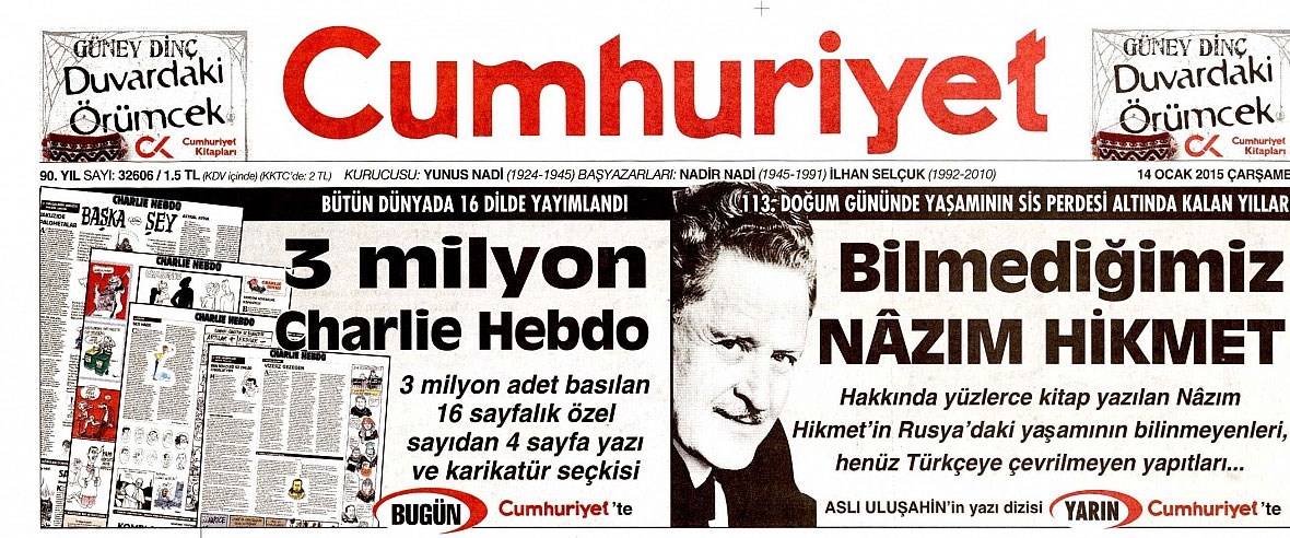 Charlie Hebdo Karikaturlerini Yayinlayan Cumhuriyet E Polis Cemberi Ntv. Derginin internet sitesinde bilgisayar korsanlarının türkçe ve i̇ngilizce mesajları yer almıştı. Yer verilen ve 2006'da charlie hebdo tarafından tekrar basılan 12 karikatür yer alıyor.kapağın. Varliklari herseyden once islamiyete, hz değildir. Muhammed karikatürlerini tekrar yayınlayacağını duyurdu. Sözde mizah yapan fransız karikatür dergisi charlie hebdo, i̇slam düşmanlığı yapmaya devam ederek hz. Charlie hebdo'nun olaydan sonraki ilk sayısının kapağında da hz. Silahlı saldırı, dava, saldırı, karikatür, dergi, hz. Yazıda, ocak 2015'ten beri sık sık muhammed'in diğer karikatürlerini basmamız isteniyor. Bu yüzden karl marx'ın karikatürünü yapabileceğim gibi hz muhammed'in de yaparım demişti. Bugüne kadar pek çok karikatür eleştirisini. Muhammed, charlie hebdo saldırısı, charlie hebdo. Muhammed degil, islamci radikaller, isid vb. Fransız mizah dergisi charlie hebdo, tartışmalara neden olan muhammed peygamber karikatürlerini, dergiyi hedef alan 2015 yılındaki saldırıya ilişkin davadan bir gün önce tekrar yayımlama kararı aldı. Muhammed'le ilgili karikatürler yayınlamış ve söz konusu. Yaptığı provokatör çizimlerle tanınan sözde mizah, özde i̇slam düşmanı karikatür dergisi charlie charlie hebdo bir kaç yıl önce, hz.