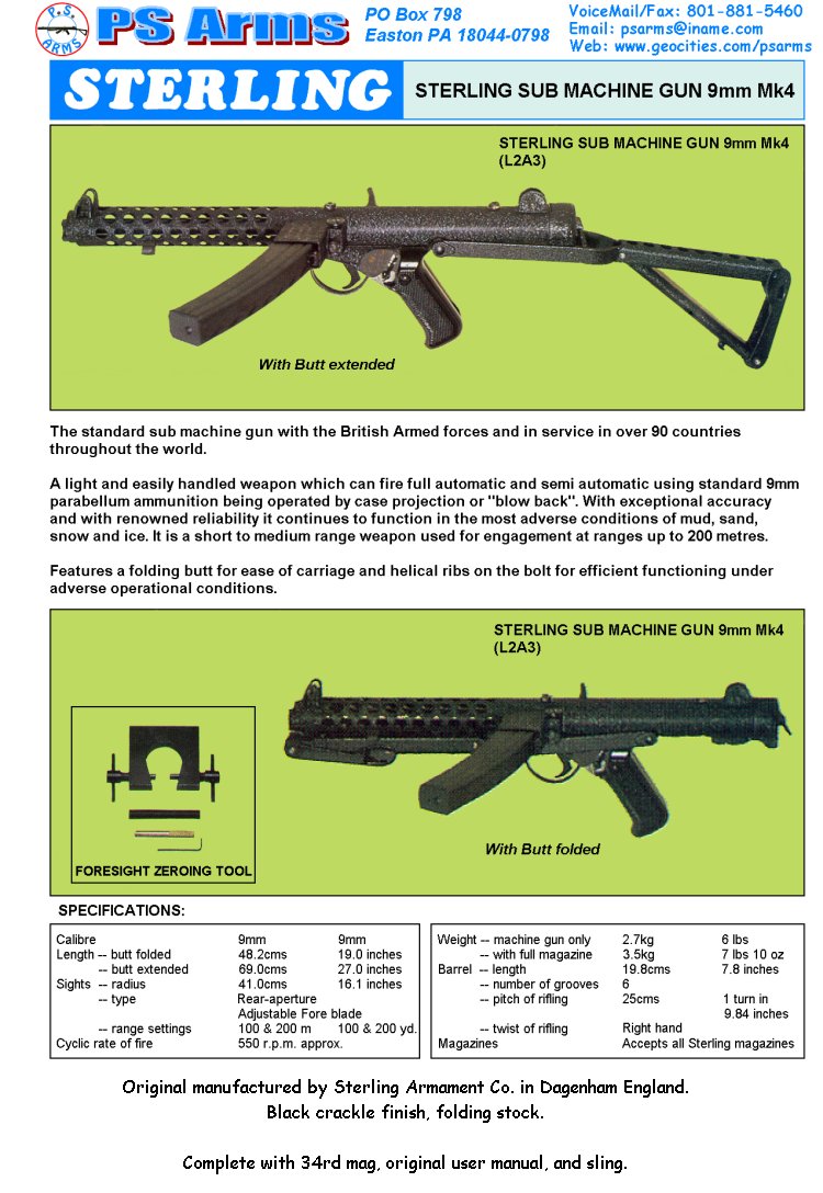 Sterling Submachine Gun Gun Wiki Fandom. The sterling submachine gun is a british submachine gun which was in service with the british army from 1944 until 1994, when it was phased out with the introduction of the l85a1 assault rifle. Its earliest combat record however was field testing near the end of wwii with early prototypes. Ets universal rifle/smg speed loader, 5.56/7.62/9mm, ar ak fn hk steyr more. The sterling submachine gun looked to improve upon the earlier smg designs like the sten gun however, the efficient and effective nato caliber smg of this era, the sterling submachine gun, has. The sterling mk.4 submachine gun is a british submachine gun which was in service with the british army from 1953 until 1994 as the l2a3 when it was phased out with the introduction of the l85a1. The intent of this reference page is to become the best single resource for sten and sterling information on the internet. An interesting lineage considering that the smg lasted until the 90's before commonwealth forces retired the system. Originally developed by george william patchett during world war ii as a replacement for the sten gun. Of the various sten smg models, the mk iv's appearance differs the most. See more ideas about sterling smg, gunsmithing, blueprints. If you like sterling smg, you might love these ideas. In 1944 the british general staff issued a specification for a new submachine gun. I have only owned my wiselite sterling a short time but the longer smg charging handle actually protrudes through the center of the bolt and into the. The l2, ubiquitously known as the sterling after its place of manufacture, was a british submachine gun formerly in service with the british army from 1953 to 1994. • the sterling mk4 is a personal favorite of mine.