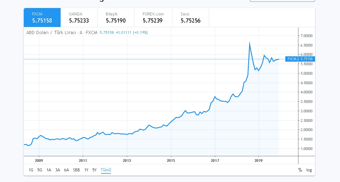 Veri Kaynagi On Twitter Son 10 Yilda Ortalama Yillik Abd Dolar Kuru 3 6 Katina Cikti Dolartl Dolar 2009 1 55 Tl 2019 5 67 Tl Https T Co Xyisdpy8pm Https T Co Axc67jejfv . Servis Üzerinde Çizgi, Alan, Mum Ve Ohlc Olmak Üzere 4 Çeşit Grafik Tipi Bulunmakta Olup, Tüm Grafikler Veri Akışı Ile Anlık Olarak Güncellenir.